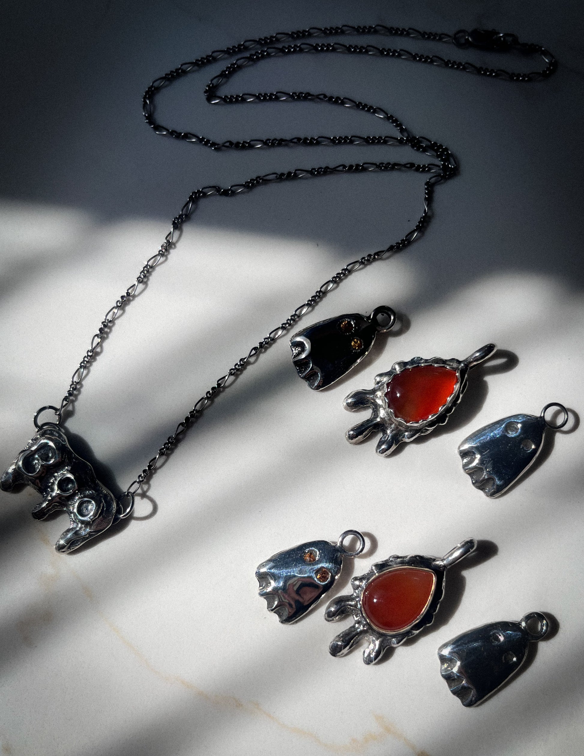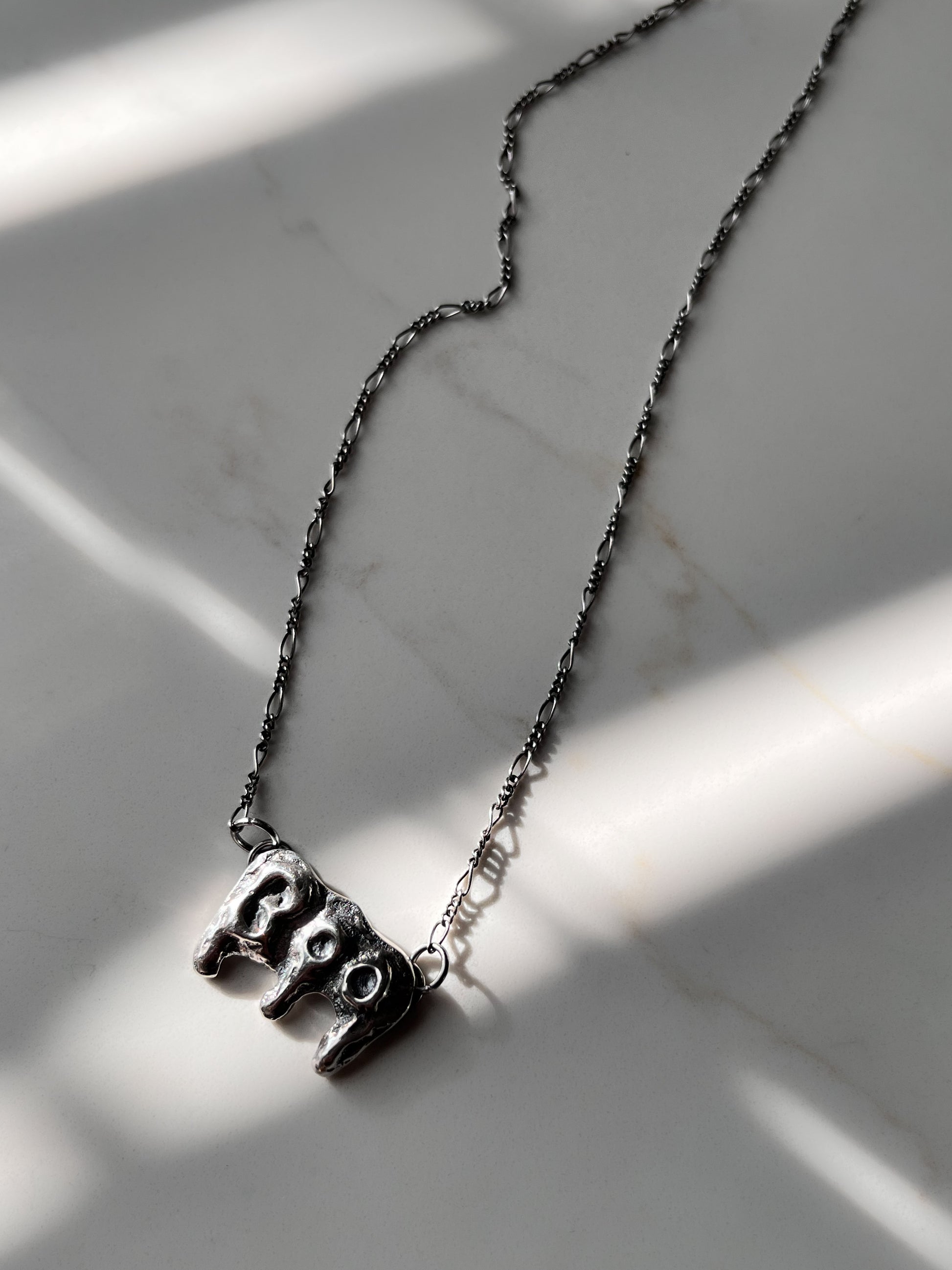Solid Sterling Silver Boo necklace on a Sterling Silver 19 inch Blackened Figaro Chain.