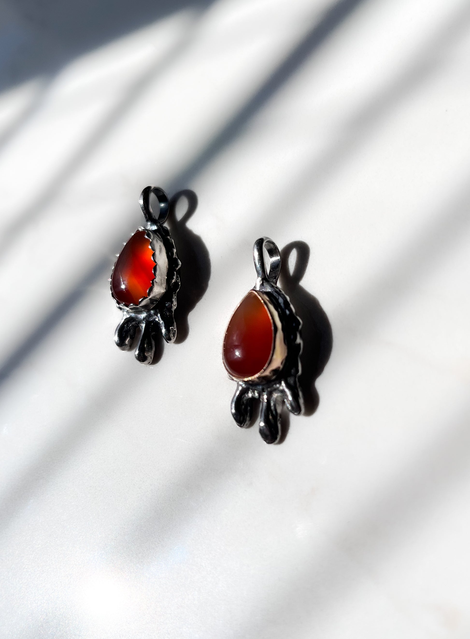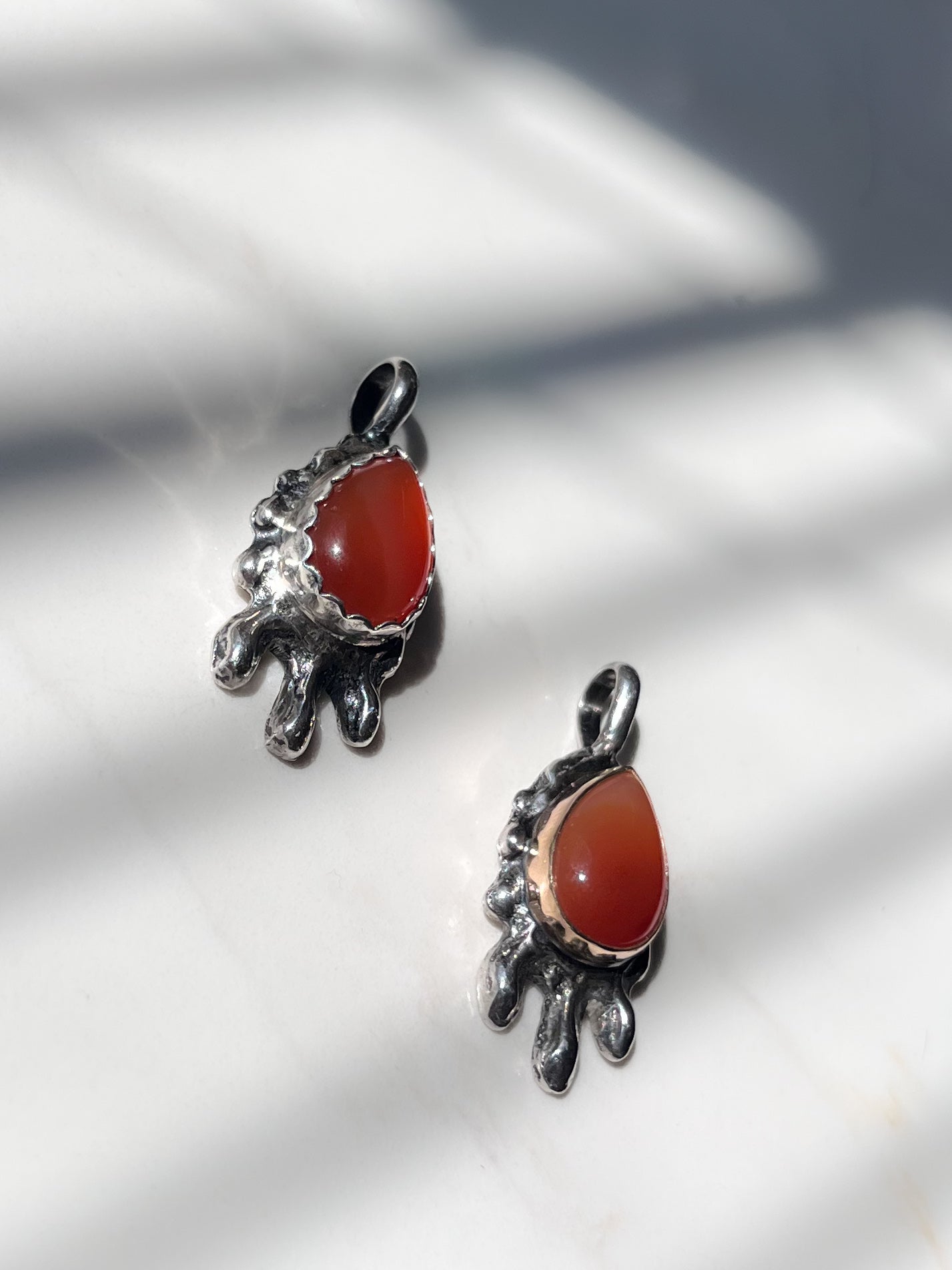 Handcrafted from reclaimed scrap sterling silver and fine silver, this pendant cradles a fiery carnelian gemstone in a molten, wax-like setting. The silver edges flow like candle drips, while the carnelian glows like a flame within.